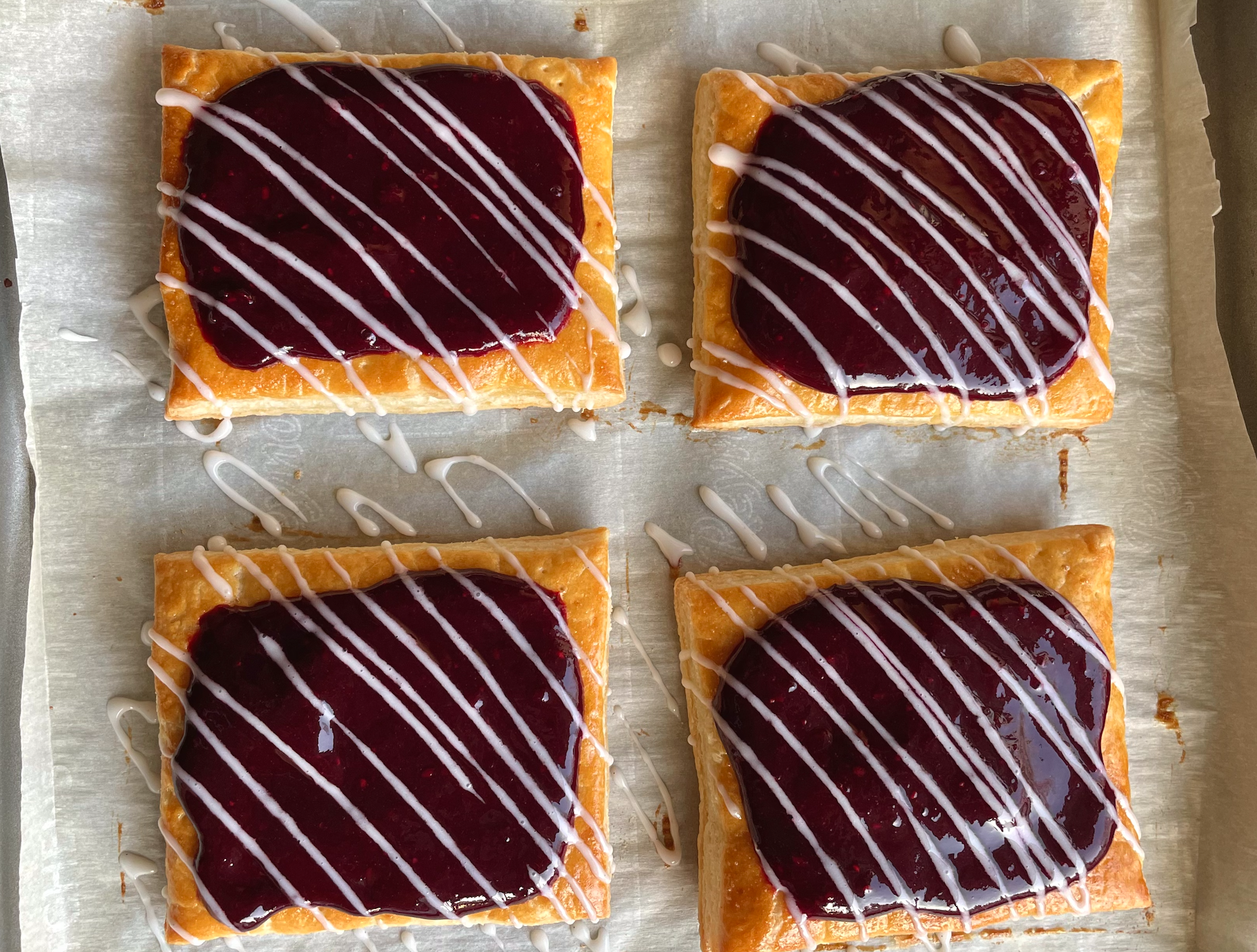 Drizzle the icing generously over the top of each pastry, diagonally. These are best served the same day. Enjoy!